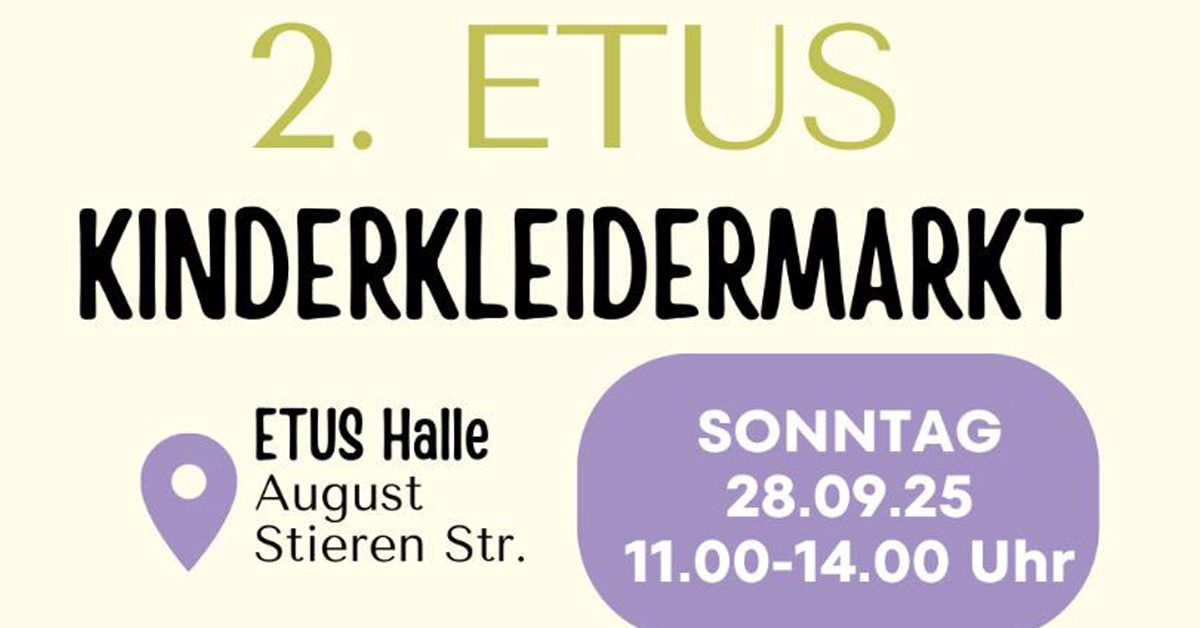 Am Sonntag, den 28. September 2025, findet von 11:00 bis 14:00 Uhr in der ETuS Halle, August-Stieren-Straße, Haltern am See der 2. Kinderkleidermarkt des ETuS Haltern statt.