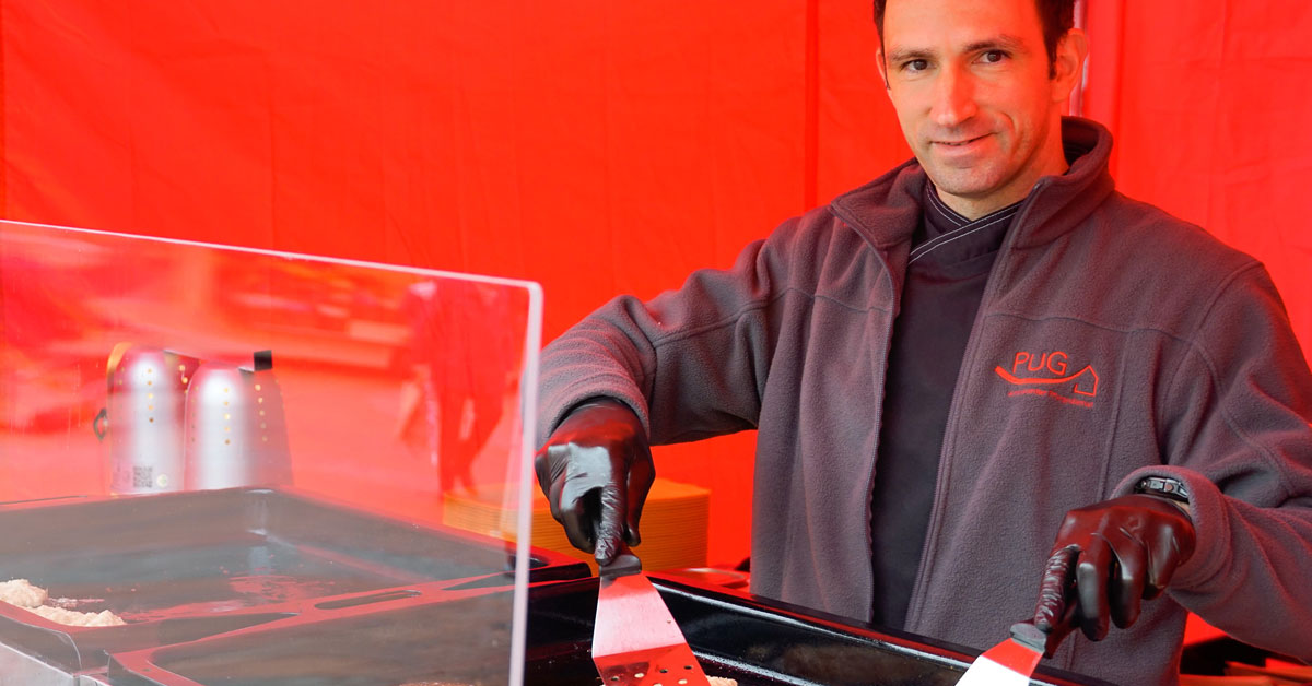 Das Team ist jeden ersten und dritten Freitag im Monat vor Ort und versorgt Besucherinnen und Besucher mit warmen, frisch zubereiteten Speisen – zum direkten Genießen vor Ort oder bequem zum Mitnehmen.