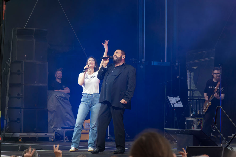 Die scheinbar junge Frau – moment mal, Nena ist ja auch schon 65 – flitzte über die Bühne und lieferte zu der top eingespielten Band stimmlich hervorragend ab. Alles passte. Alles war auf dem Punkt. Nena und ihre Band haben es geschafft, die 80er in ein zeitgemäßes Gewand zu kleiden und sich zu einer erstklassigen Rockband zu mausern, die auch noch im Jahr 2025 mitreißend frisch und mit viel Groove daherkommt.