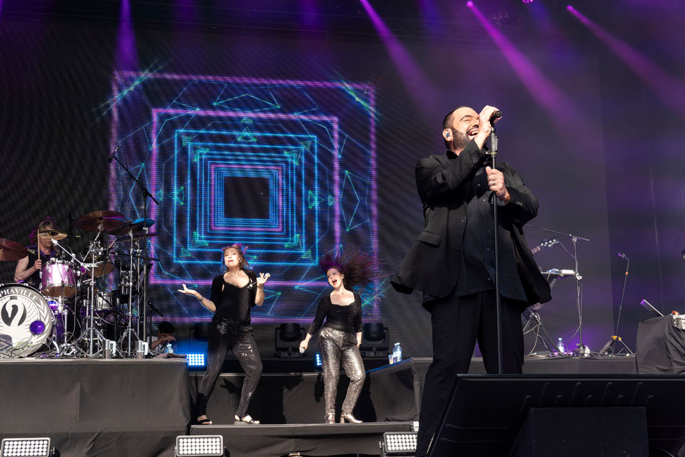 Als zweiter Act startete die aus Münster stammende 80er-Kultband Alphaville. Hier fragte man sich gleich, welchen Jungbrunnen Sänger Marian Gold wohl aufgetan hat, denn dass der Frontmann bereits 71 Jahre auf den Buckel hat, war schlichtweg unglaublich. Stimmgewaltig und agil sang er sich durch das Alphaville-Programm der 80er. Synthi-Klänge standen klar im Fokus und die Gitarren waren kaum wahrnehmbar – das war früher eben auch genauso.