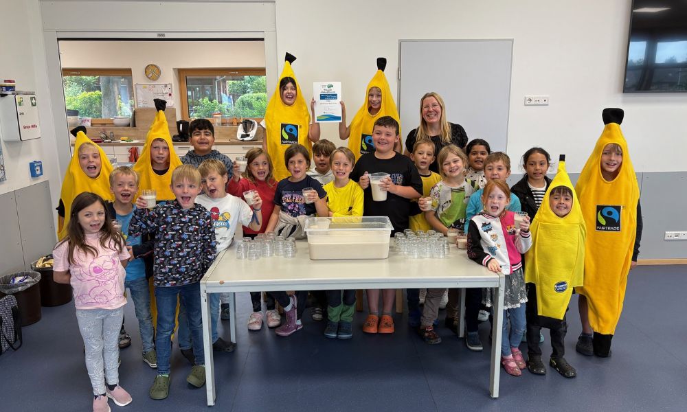 Mit 261 Bildern und einer Quote von 95,26 Prozent belegte die Katharina-von-Bora-Schule den zweiten Platz. Als Gewinn erwartet die Schule ein Workshop-Angebot von Fairtrade Deutschland zu einem Wunschthema. Bereits vor den Ferien fand eine besondere Aktion statt. Viertklässler mixten aus Fairtrade-Bananen Milchshakes und verteilten sie in Bananenkostümen. Lehrerin Martina Schulze freute sich über die Begeisterung: „Fairtrade macht nicht nur Sinn, sondern auch richtig Spaß.“