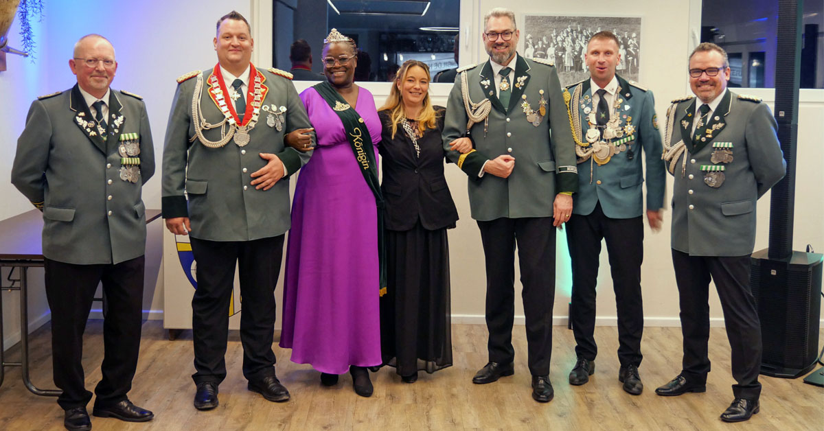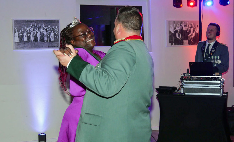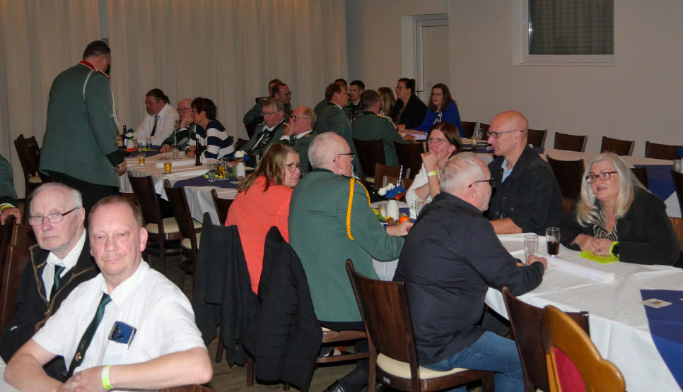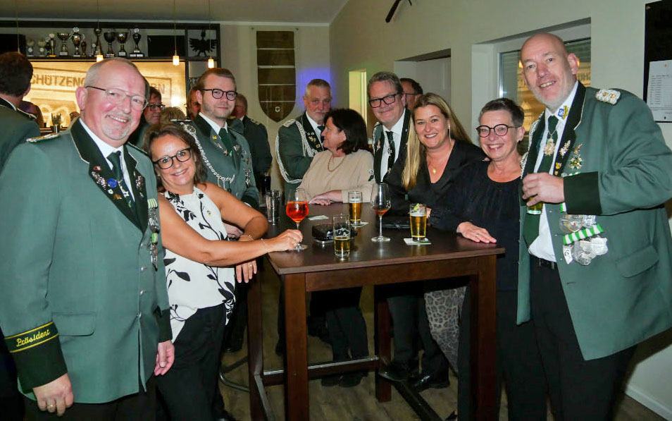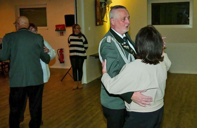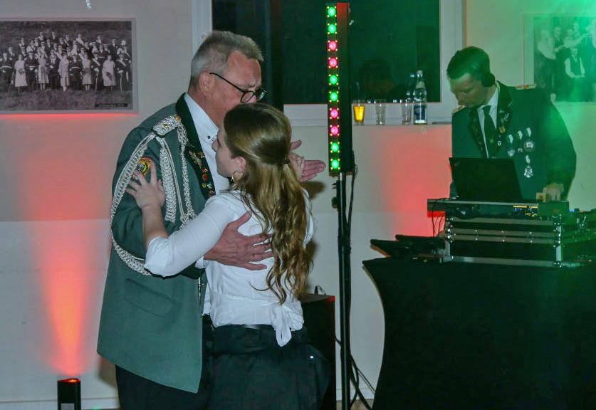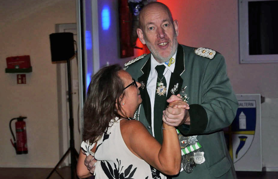 Präsident Frank Leopold freut sich über die zahlreich erschienenen Schützen: “Wir freuen uns, die vielen lang verdienten Mitglieder zu ehren. Erst haben wir in Ruhe beisammen gegessen, und dann ging es auch schon auf die Tanzfläche. Wir machen jetzt keine große Party, wir wollen alle zusammen einfach eine schöne Zeit haben”. Auch das Königspaar um Daniel Elting und Acij Albring ließen auf dem Dancefloor das Tanzbein schwingen.