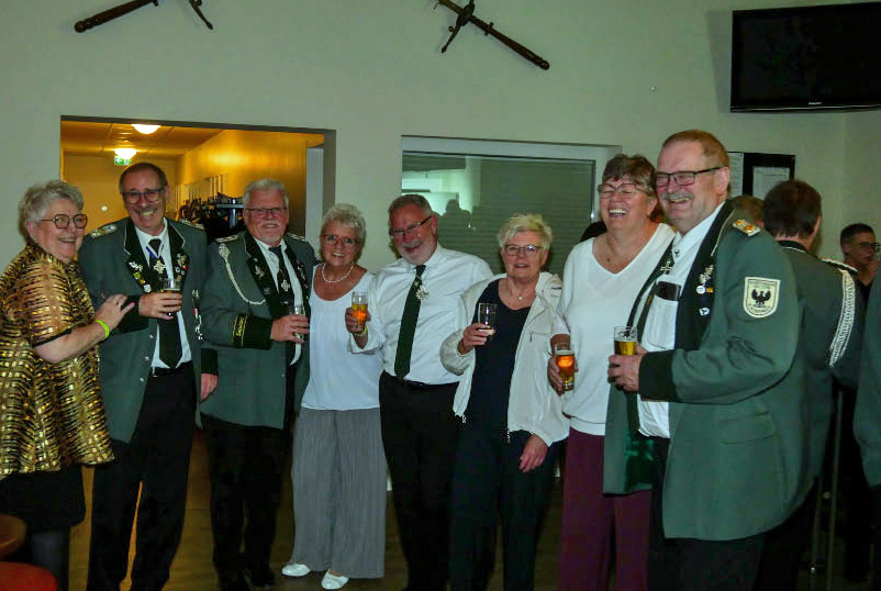 Zum jährlichen Offiziersball des Halterner Schützenvereins wurden über 30 langjährige Mitglieder für ihren Dienst im Verein geehrt. Darunter auch vier Mitglieder, die seit 65 Jahren Teil des Schützenvereins sind. Für dieses besondere Engagement wurde ein Ball mit ausgelassener Livemusik von DJ Schenko und einem reichen Buffet organisiert.
