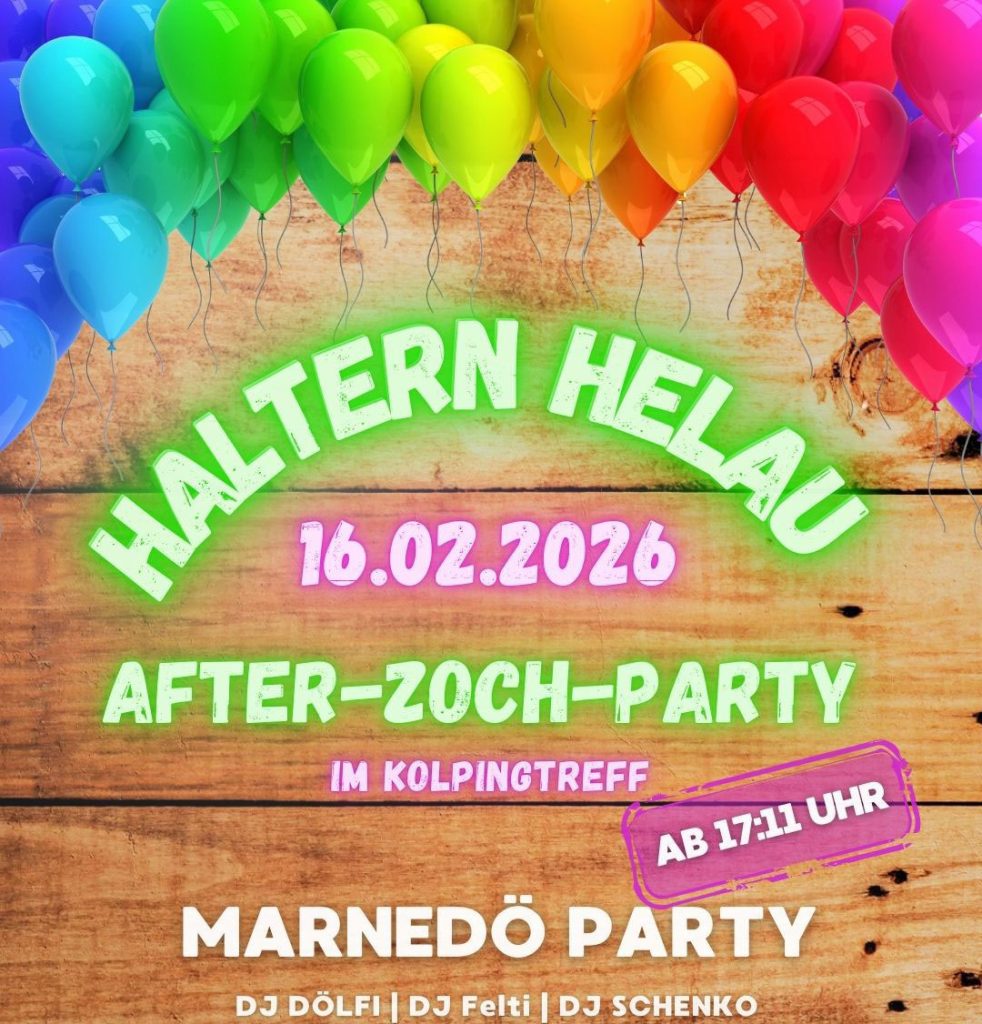 Die Veranstaltung endet mit Auslosung der Tombola-Gewinne auf der Bühne gegen 17:00 Uhr. Anschließend lädt das DJ-Trio „MARNEDÖ“ alle erwachsenen Jecken zur „After-Zoch-Party“ ab 17:11 Uhr im Kolpingtreff ein. VVK-Karten sind im Modehaus van Buer und Rossini am Markt erhältlich. Für alle Gäste des Umzugs und der Abschlussfeier, stellt der Verein, zusätzlich zu den öffentlichen Toiletten in der Kirchstraße, mobile Toiletten gegenüber den öffentlichen Toiletten kostenlos zur Verfügung.
