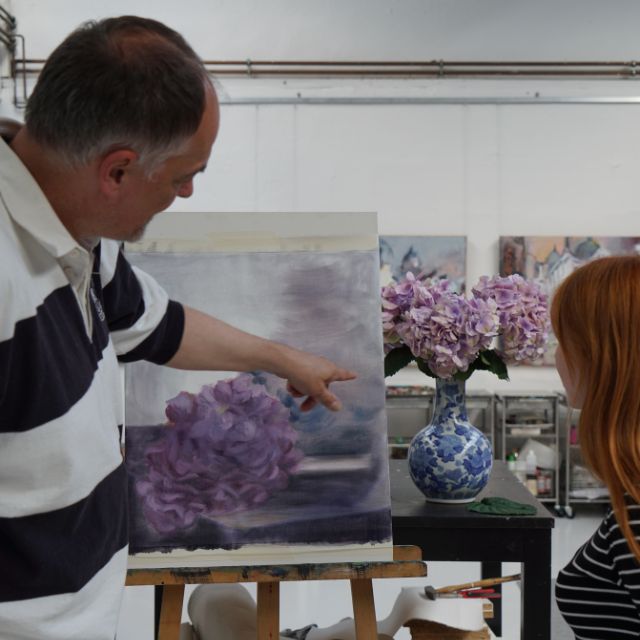Neben der praktischen Kunstvermittlung lernen die Teilnehmerinnen, ihre Werke zu reflektieren und konstruktives Feedback zu geben. In regelmäßigen Bildbesprechungen mit erfahrenen Künstler*innen erhalten sie wertvolle Einblicke in kunsthistorische Kontexte und aktuelle Entwicklungen in der Kunstszene.