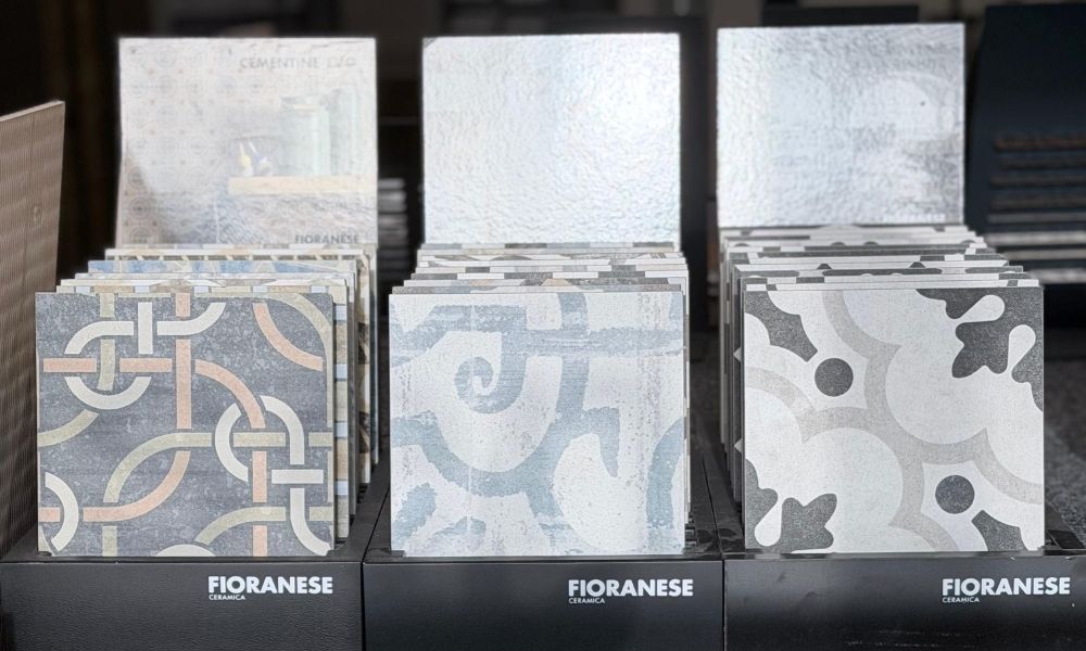 Die Ausstellung bietet zudem Fliesen in unterschiedlichen Formaten, von klassischen Standardformaten 30 x 60 cm bis hin zu exklusiven Großformaten 120 x 278 cm. Außerdem gibt es eine Vielfalt an Designs und Materialien aus Italien, Spanien, Deutschland und Portugal.