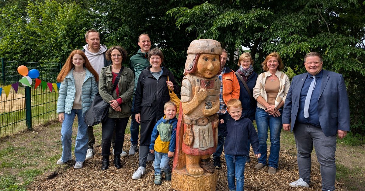 Eine neue Holzskulptur ziert den Spielplatz an der Römerstraße in Haltern