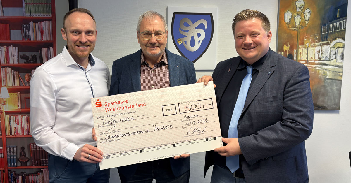 Die Sparkasse Westmünsterland hat die Leistungen der heimischen Sportlerinnen und Sportler sowie das Engagement der Vereine mit einer Spende in Höhe von 500 Euro gewürdigt.